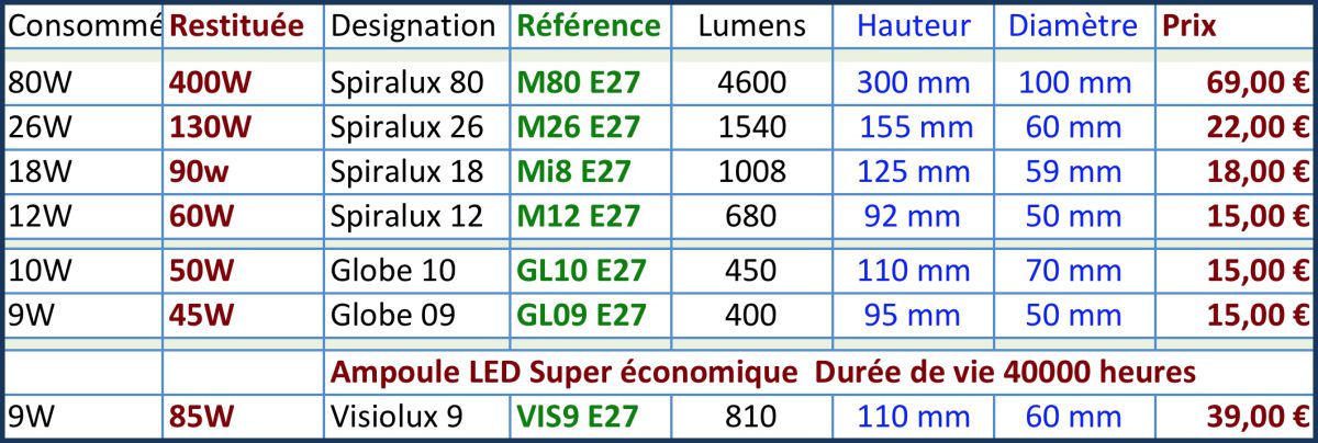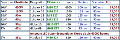 Compatible avec les fixations incandescentes standart à visser